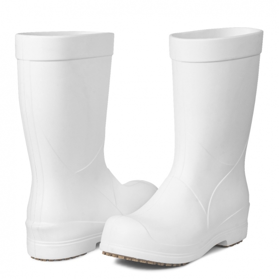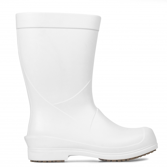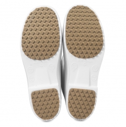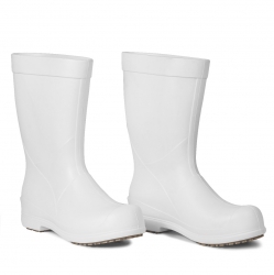 Bota ocupacional de EVA, modelagem unissex, equipada com solado de borracha hexagonal antiderrapante e palmilha antimicrobiana.