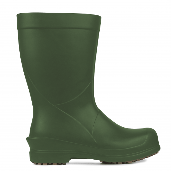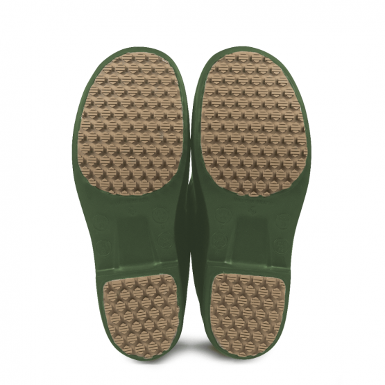 Bota ocupacional de EVA, modelagem unissex, equipada com solado de borracha hexagonal antiderrapante e palmilha antimicrobiana.