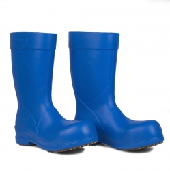 Bota de segurança de EVA com biqueira de composite 200J, solado de borracha hexagonal antiderrapante, modelagem unissex e equipada com palmilha antimicrobiana.